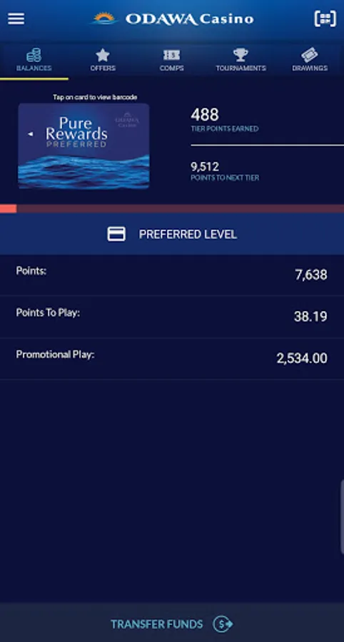 Odawa Casino mobile app allows pure rewards members access to player information, notifications, and touchless card-in at EGM’s. Pure rewards members can view their Tier Level, Tier Points Earned, Points to Next Tier, Points Balance, Promotional Play, Offers, Vouchers, available tournaments, and drawing tickets. Members can also access the Odawa Casino website and other 3rd party sites connected to Odawa Casino Resort.