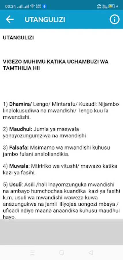 5) Ikiwezekana, toa mifano kutoka kwenye tamthilia inayohusiana na jambo unalolifafanua ili kuweka jambo hilo wazi.