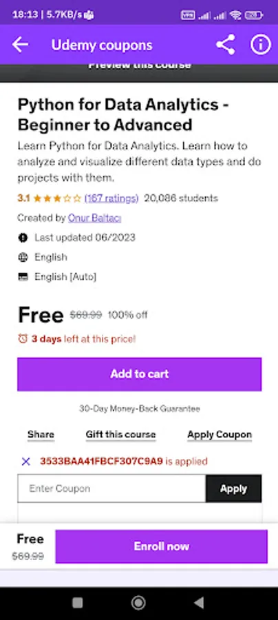 **Coupons are usually valid for less than 24 hours, so be sure to use them quickly! The number of coupons available is limited, so don't wait too long to redeem yours. For best results, check the Udemy Coupons app daily for the latest deals.**