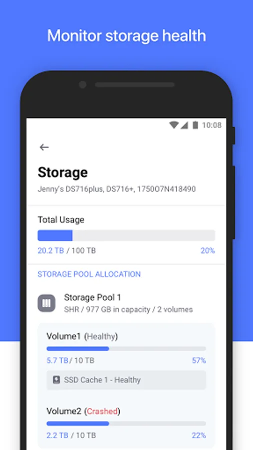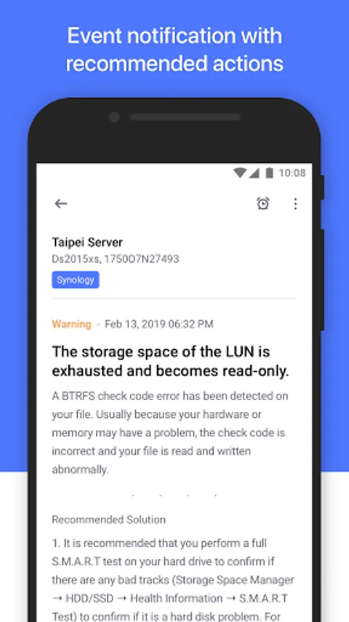 Synology Active Insight is a health monitoring solution that supports multiple Synology NAS system health and performance monitoring under one Synology Account. You may receive system events with detailed troubleshooting actions from Synology with your mobile device. You may view current performance and storage summary of your Synology NAS.