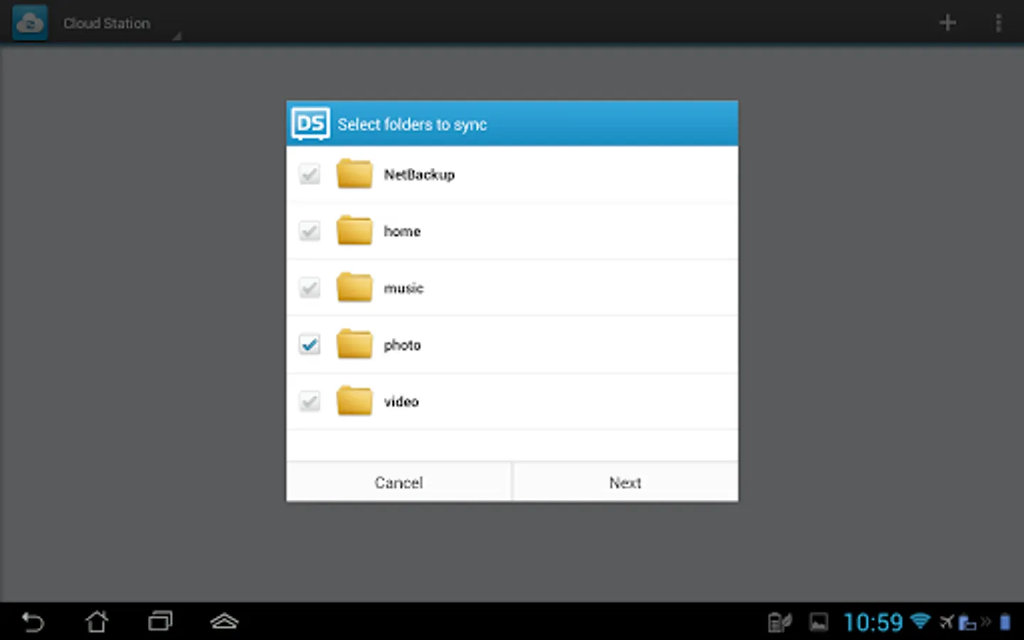 DS cloud is the counterpart to Cloud Station for your Android device. It allows you to choose the folders on your DiskStation which you want to sync to your mobile device and make available for offline viewing. DS cloud also gives you total control over the sync criteria: for each folder, you can set the maximum file size as well as the type of files you wish to sync.