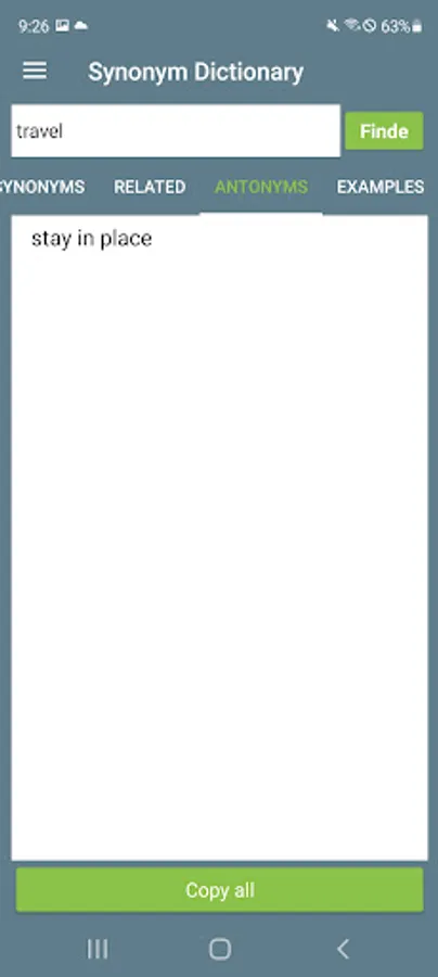 This synonyms and antonyms app works online and requires a permanent internet connection. After disconnecting the Internet, the app will work unstable.
