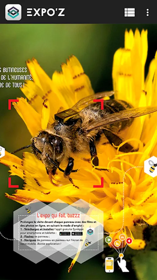Expo'z transforms the visit into an immersive and entertaining experience. The user can also take exposure in her mobile device, and revived later the whole visitor experience.