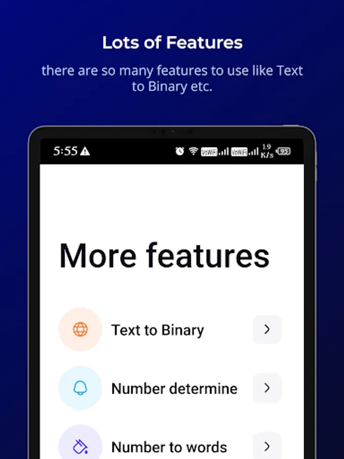 Best Calculator app for your Android Phone, It has so many features for you like Hide your files, text to binary, determine numbers & many more.