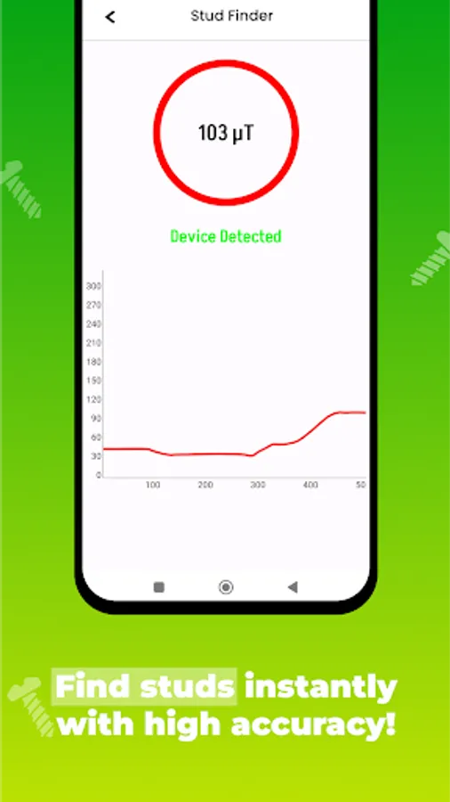 Magnetic stud finder: Simply start scanning your wall or desired surface, moving your phone smoothly to pinpoint stud locations. The app will notify you with beeps or vibrations upon finding hidden studs.