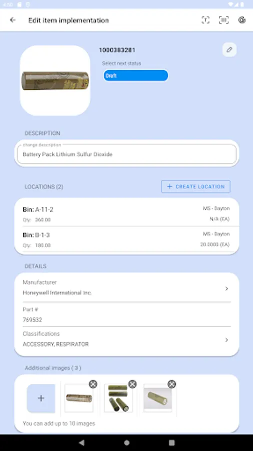 Improve the accuracy of your inventory data. Simple, mobile data collection process that accelerates and streamlines data capture in your storerooms. Add photos to the system from any location, no matter where you are. Add/Adjust your product on the shelves from your smartphone. Bar code reading capabilities for finding and identifying parts and locations. Adding locations and multiple bins for inventory consolidation.