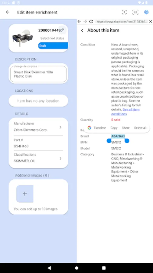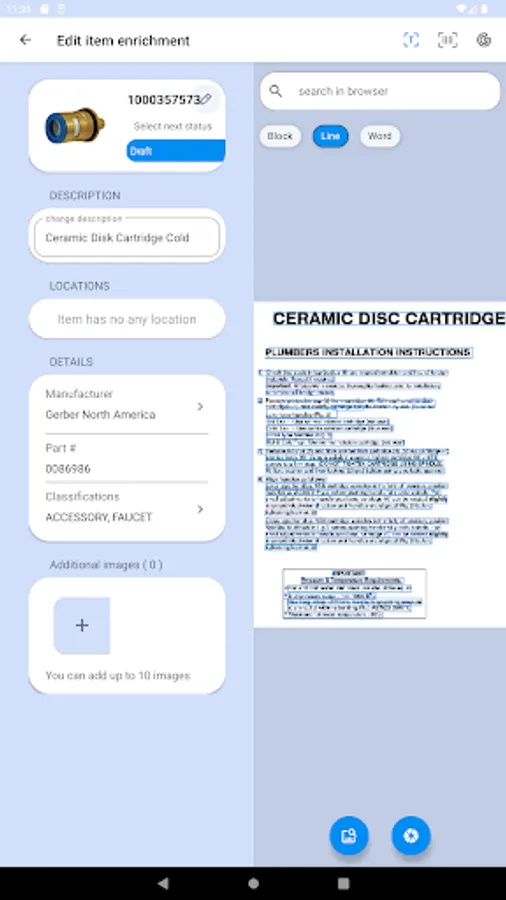 SYNC SnapPart app by RS Integrated Supply (FKA Synovos) is the essential business tool to help you manage your inventory. Sign in with your existing SYNC account. Search items by scanning a barcode or using description keywords. Tap on the item image to take a photo of a new product. SnapPart leverages mobile, imaging, and artificial intelligence technologies to rapidly identify parts and collect comprehensive information including pictures/models, manufacturer, mfr part #, classification and description. Multiple modes of Data Entry, Text Recognition, Voice Recognition, Web Search and Bar Code. Whether you are improving your inventory data, or collecting it new, SYNC SnapPart makes it easy.