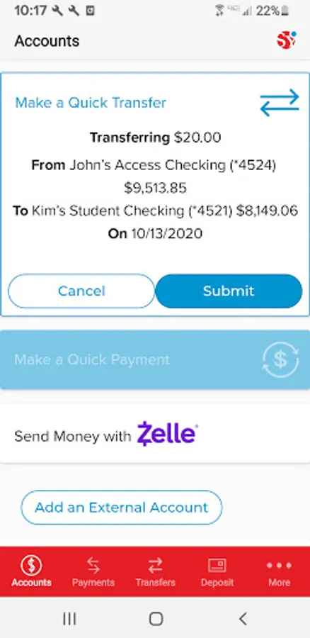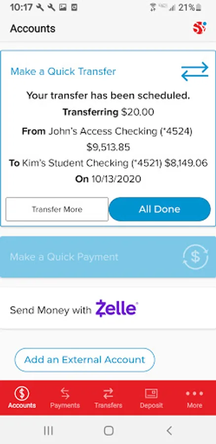 • Review activity and balances in your Synovus checking, savings, loan, and credit card accounts