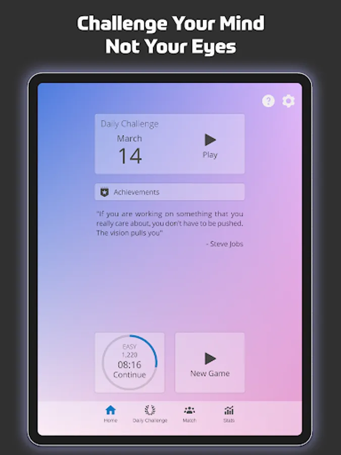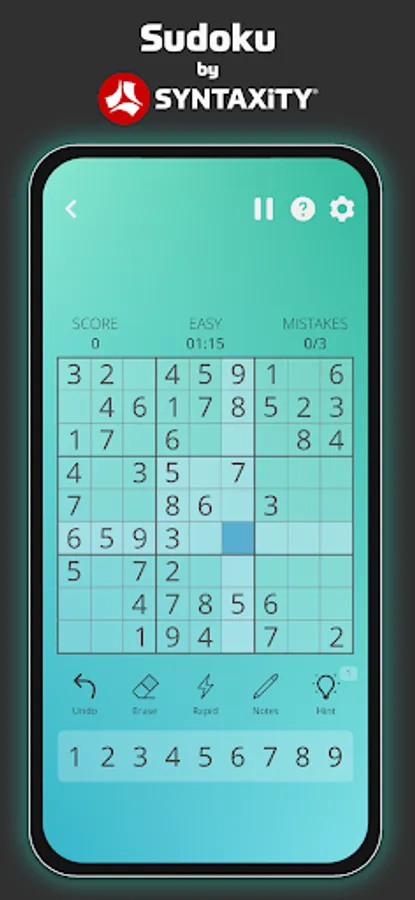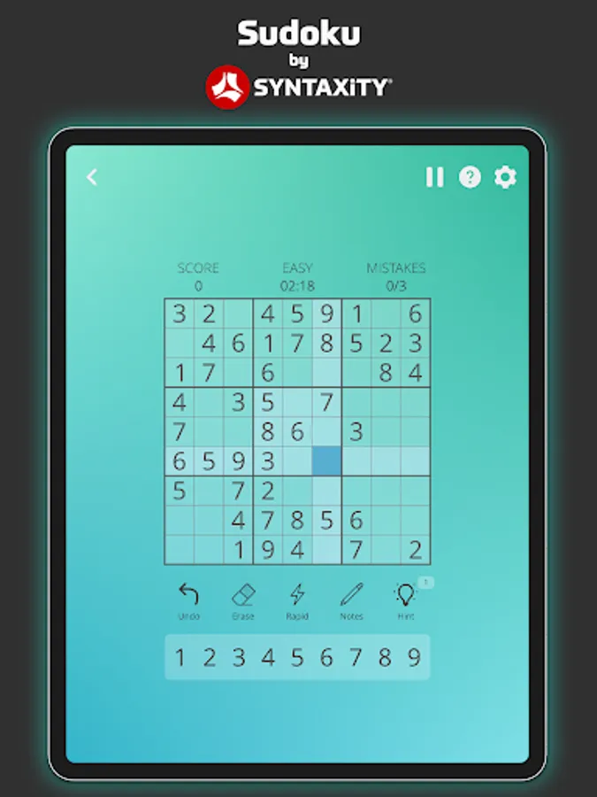 How is Sudoku by SYNTAXiTY different? It’s the fun and challenging game you know, but with the engaging, player-centered experience you’ve come to expect from SYNTAXiTY games. Opening the app you will find clean and immersive design with a transparent interface over soothing gradients.