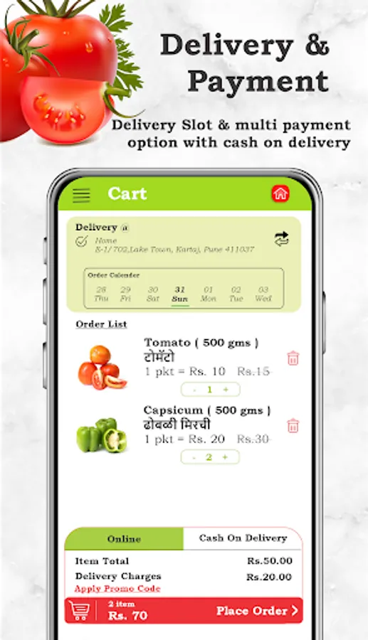 * Vegetables: Using this online fruit and vegetable shopping App, Browse and shop for your favourite locally grown fresh leafy green vegetables, root vegetables.