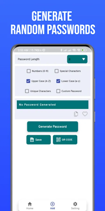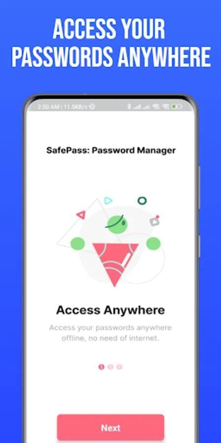 SafePass: Password Manager generates random passwords every single time to ensure that the user should not have same password for multiple accounts to avoid cyber-attacks and it also beneficial for user who uses multiple accounts and always forgets their passwords. The app saves the password in the user phone internally and cannot be accessed remotely by anyone not even SafePass: Password Manager Team.