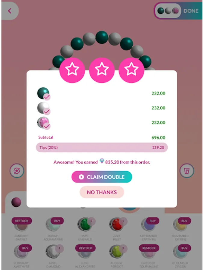 Earn diamonds and upgrade your boutique, unlocking new aesthetics and working your way up to the world's fanciest jewelry business!
