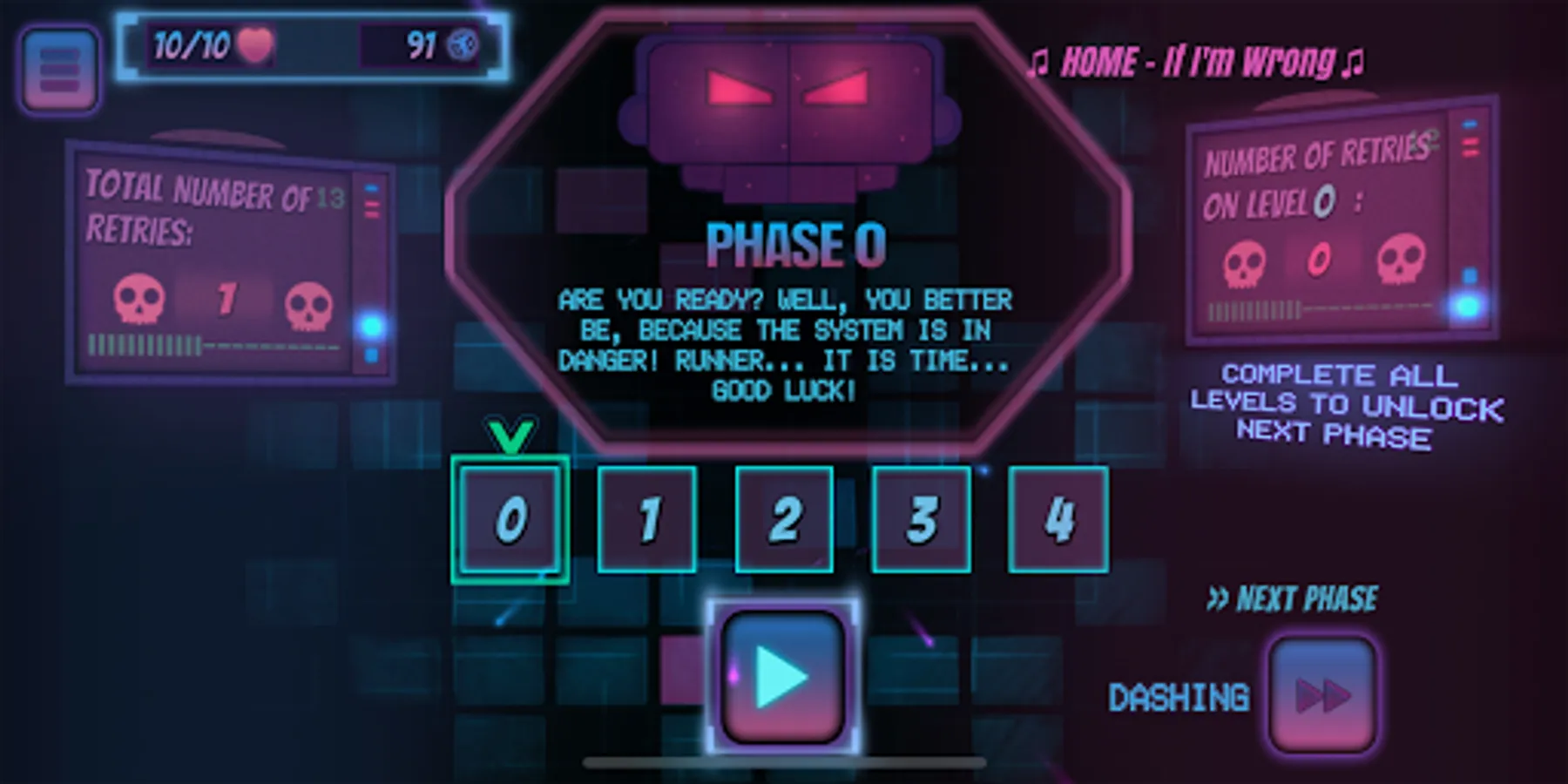 Synthwave Run is a runner type level-based mobile game that will put your reflexes and speed to the ultimate test!