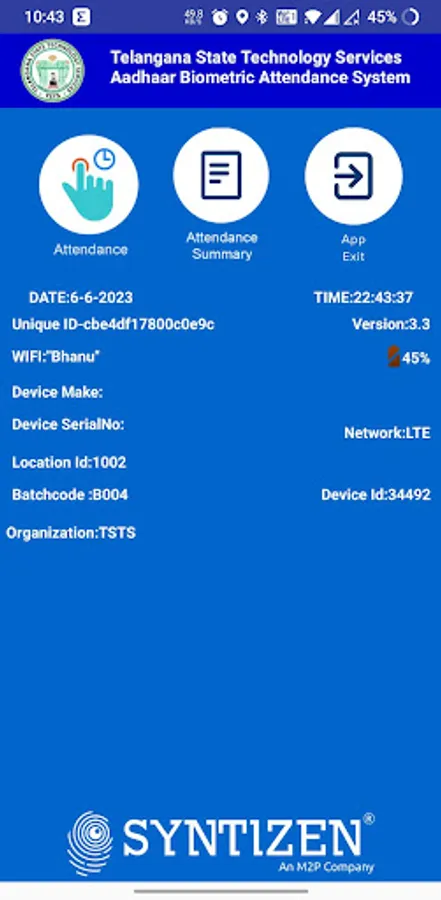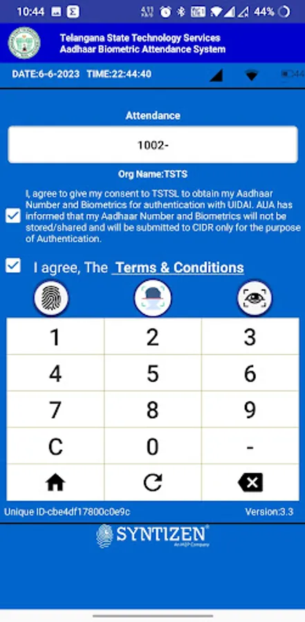 Syntizen’s Aadhaar-Based Attendance System uses Fingerprint, Face, and Iris Recognition. We have revolutionized attendance management by integrating biometric authentication with Aadhaar. The application assures precise and foolproof attendance tracking via unique biometric features such as fingerprint analysis, face capture, and/or Iris patterns of individuals. Syntizen’s advanced technology and the UIDAI ecosystem’s robustness not only guarantee security and accuracy by eliminating any possibility of proxy attendance but also streamline attendance management like never before. Our comprehensive biometric system is the future of registering attendance.