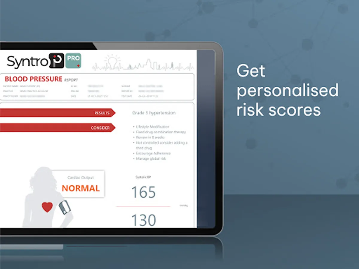 Syntro-P Professional is a smart diagnostic tool for smart medical practices. Enabling Doctors to capture biometric readings with cutting-edge devices, they can quickly obtain personalised risk scores and track patient outcomes.