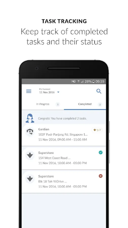 • Manage: Monitor the delivery status of jobs in the field from your office in real time 24/7. No more frantic phone calls with proper dispatch management.