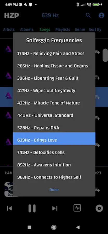⭐ Share song - share songs from the streaming library with anyone you want, in your favorite Solfeggio Frequency tuning!