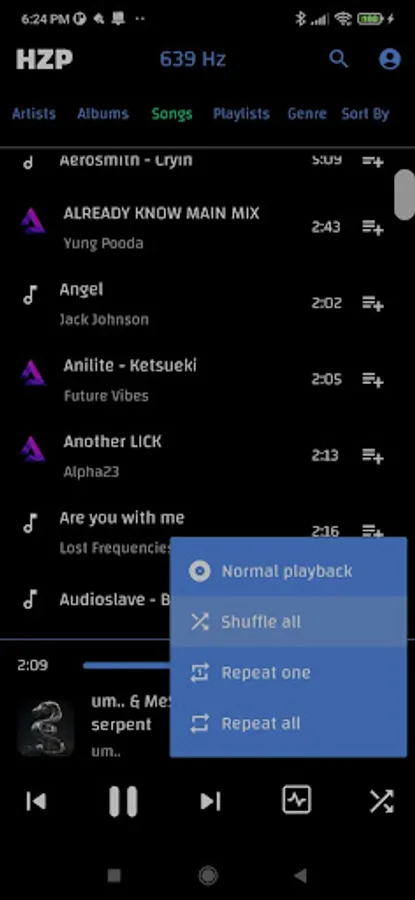 ⭐ Playback mode - Normal / Shuffle / Repeat song / Repeat all