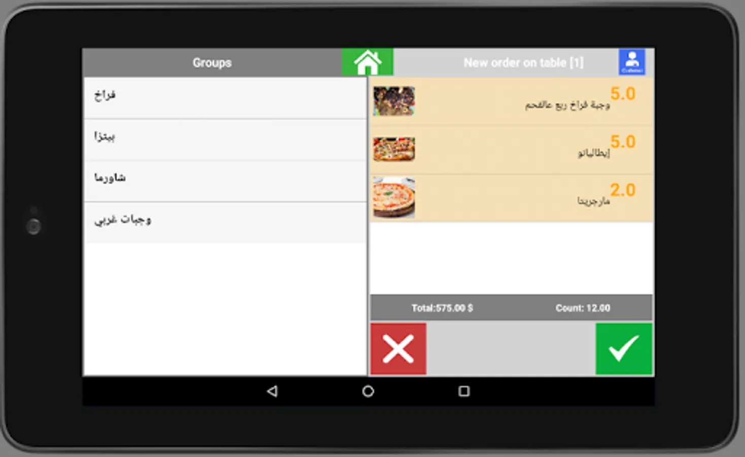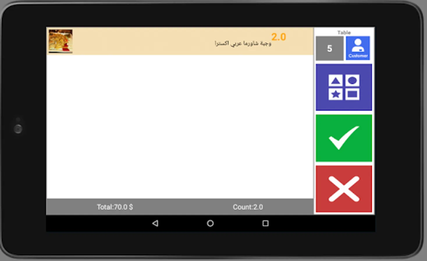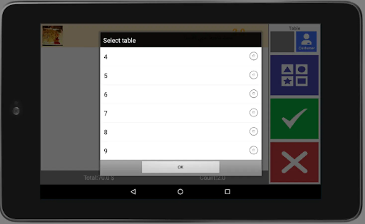 This program used by the waitress to add customers’ orders. The restaurant is being divided into sections with one waitress or more in every section. This program requires the restaurant system (POS) in Al-Ameen. The tables’ orders used to add an order. The customer can use this app to add an order but only the waitress can send the order after entering his own password.