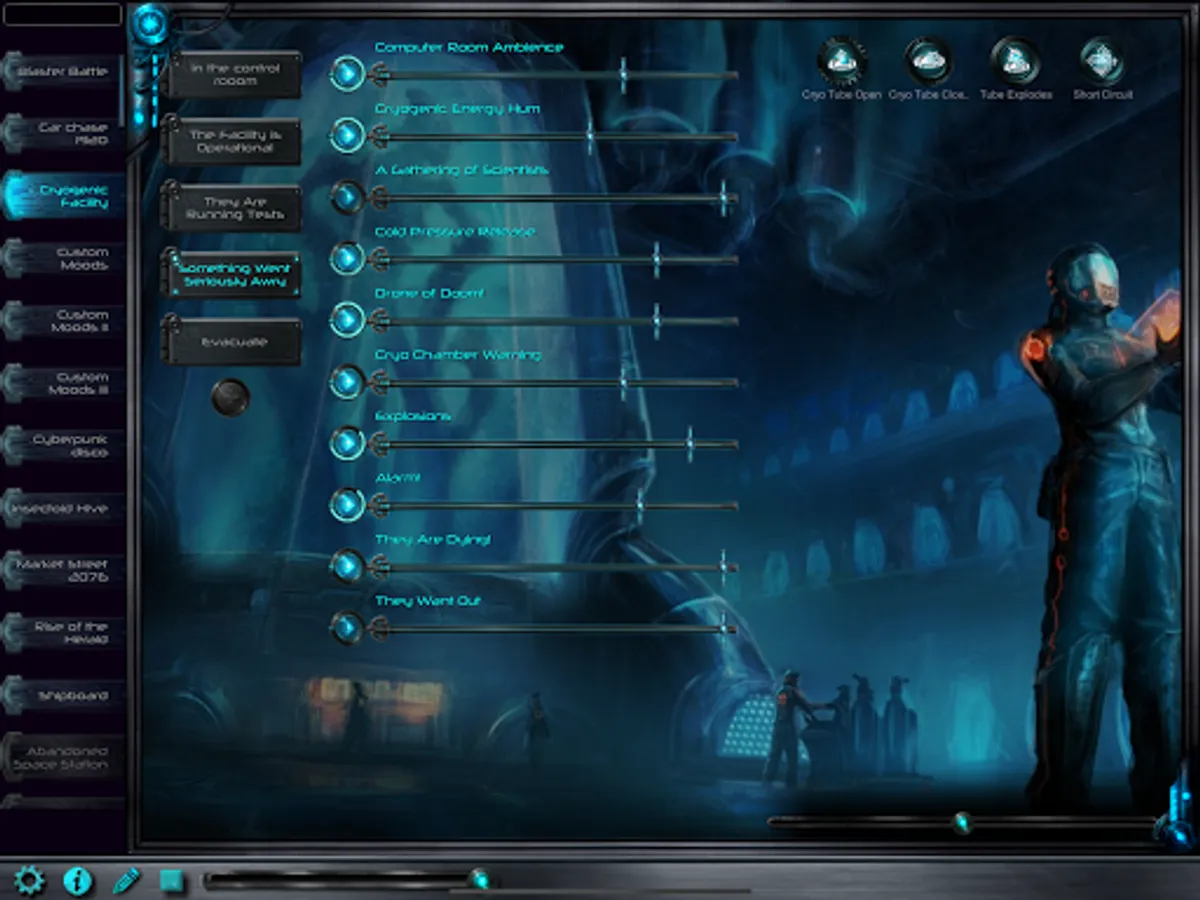 The Syrinscape Sci-Fi Player app is optimized for Android, giving users the ability to playback Syrinscape SoundSets with a beautiful, easy-to-use interface. All the Sci-Fi SoundSets you buy from the Syrinscape Store are available across all your devices, so you can pick up whichever device is to hand and immerse yourself in whatever sound world you desire.