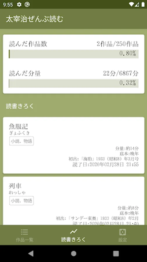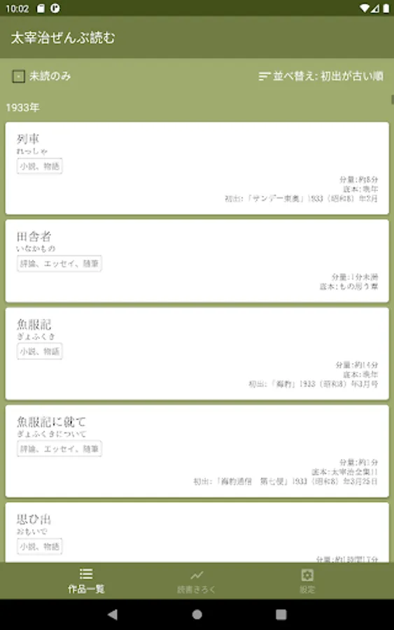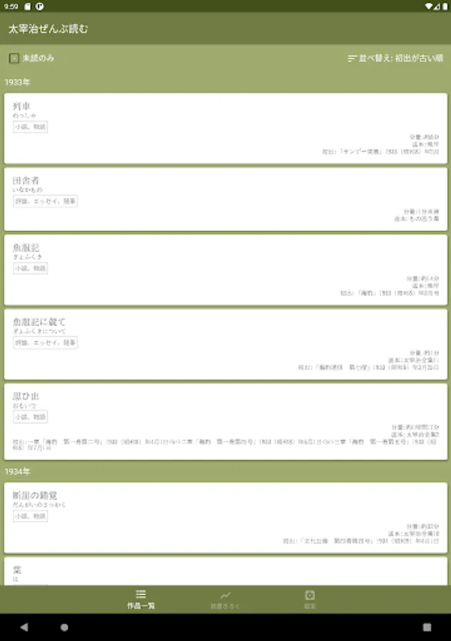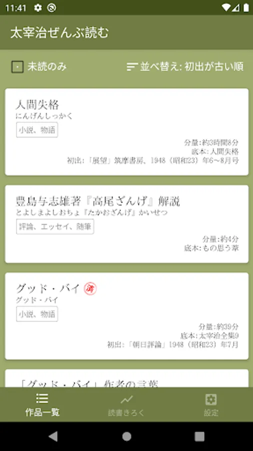 It is an application to read all (250 works) Osamu Dazai works published in Aozora Bunko.