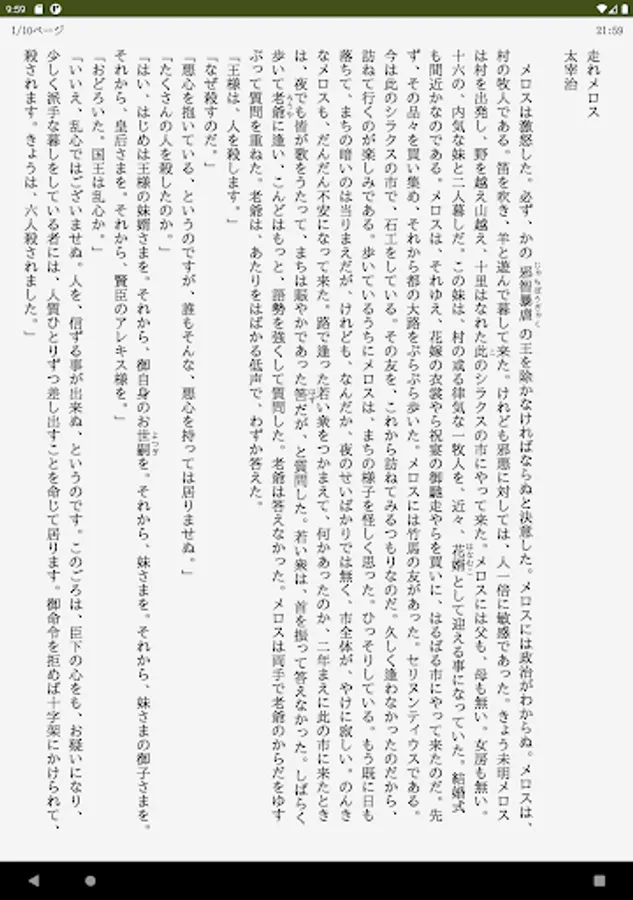 You can select a Dazai Osamu work and read it with the viewer in the app.