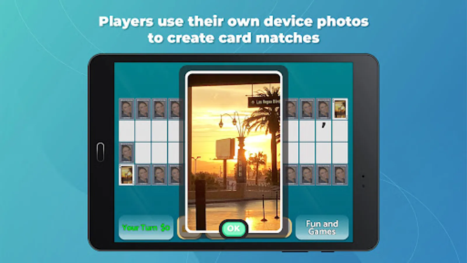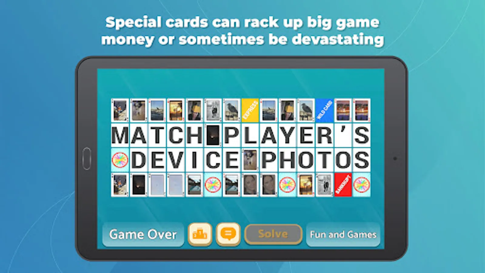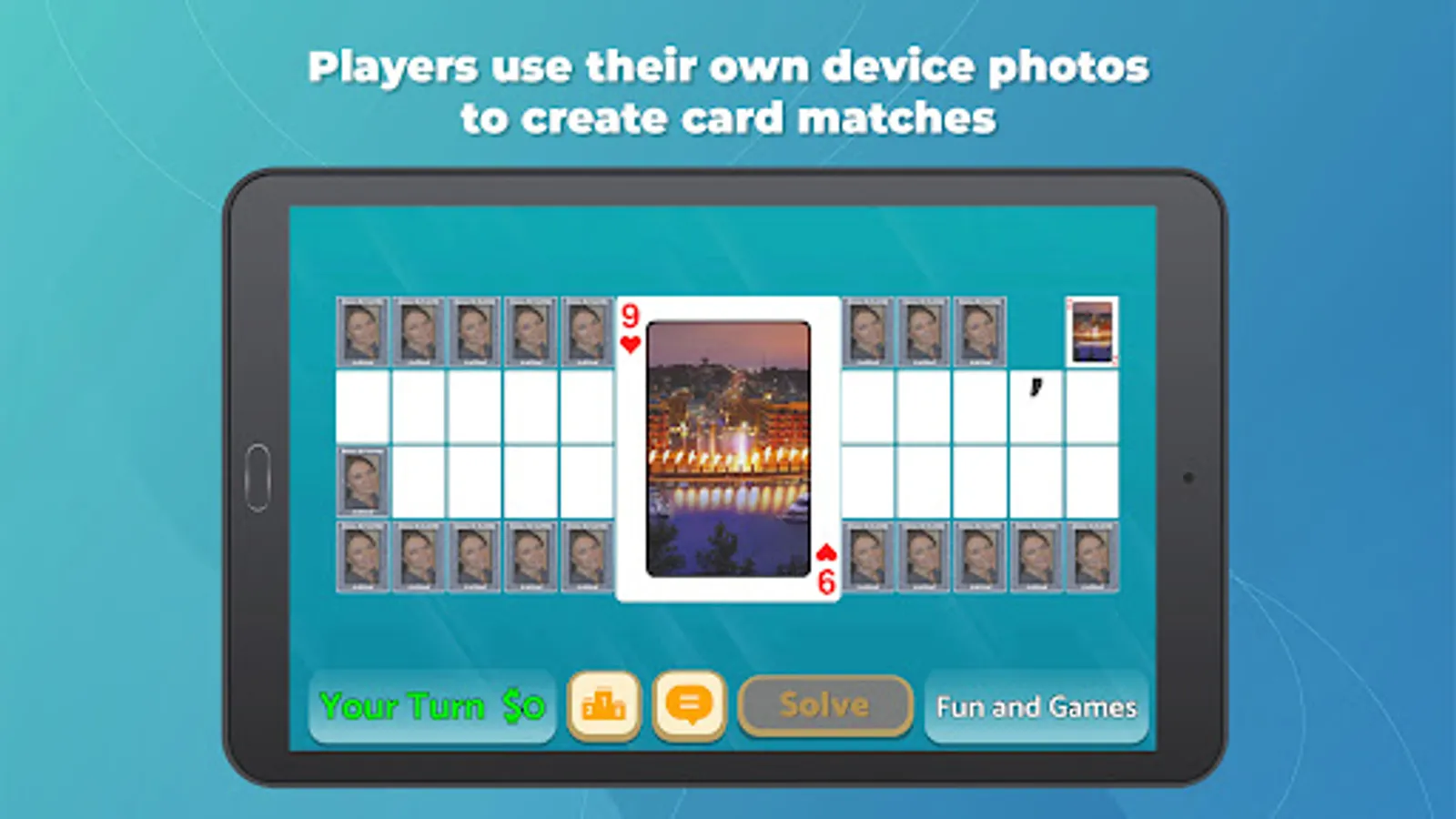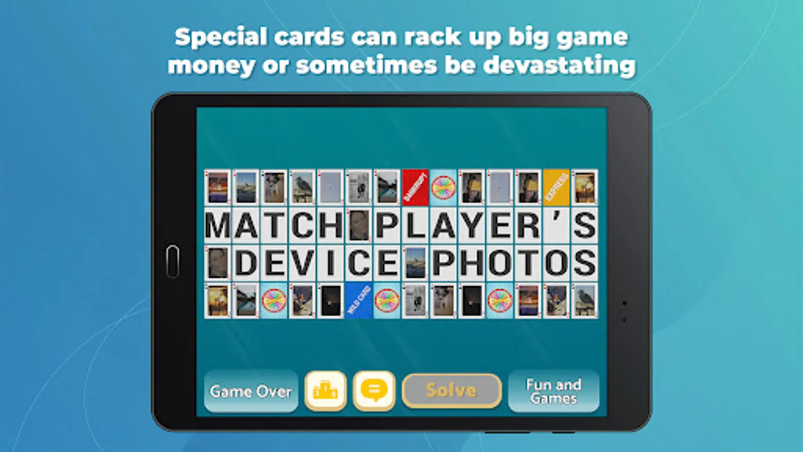 Challenge family or friends to a game of Deal of Fortune! Compete to solve the puzzle and earn the most “game money”! Use your own photos as the cards to match to send a special message to loved ones and create a personalized game.
