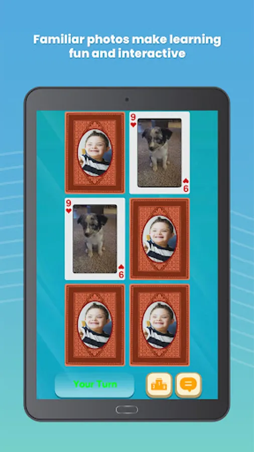 Seniors: The game stimulates both short-term and long-term memory by identifying matching photos and corresponding captions. Using current photos or photos from the past can be a great way to help identify the names of loved ones and relationships they may be struggling with.