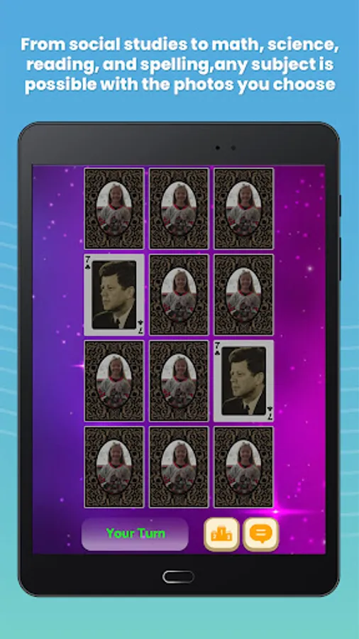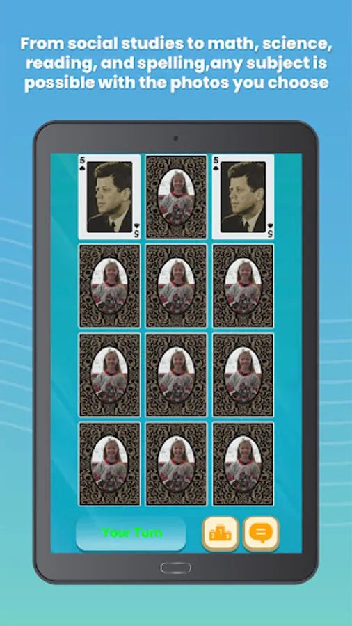 Education: Parents can create games to match images related to the subject they are learning. Whether your student is focusing on geography, vocabulary, history, or another subject, Picture This can act as "flashcards" and make learning fun!