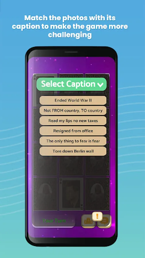 The "Your Statistics" Setting of the app allows you to keep track of your progress by measuring your card match rate and caption match rate in your games. Watch your memory improve over time!
