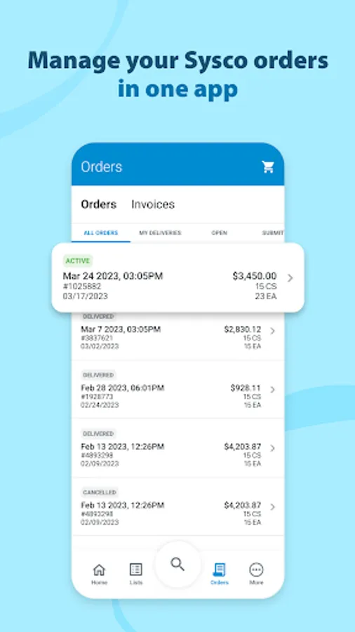 You can access up to 14 months of previous order history and modify existing orders up to the delivery cut-off time. Sysco Shop also features offline sync, so you can continue to build your order anytime, anywhere.
