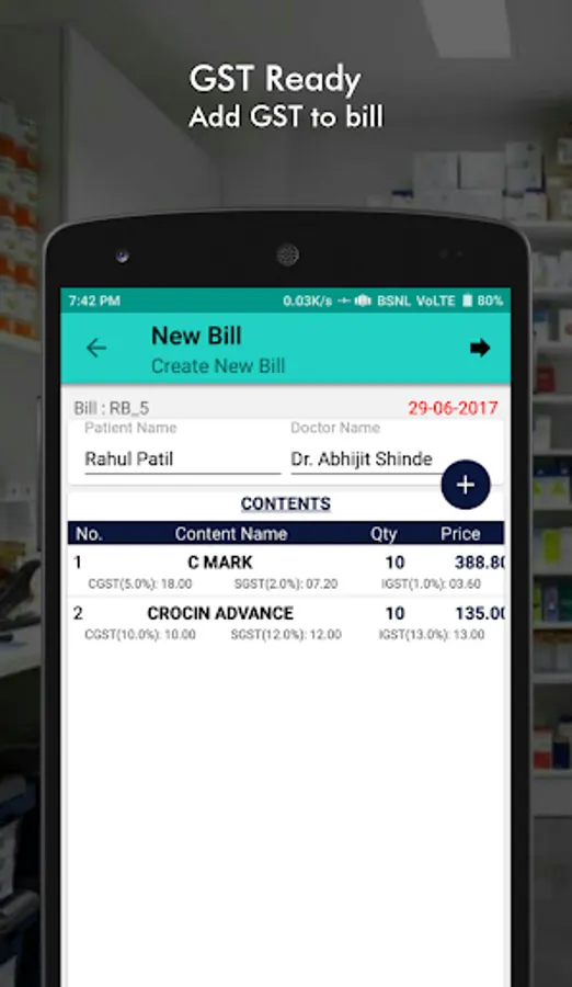 MyPharmacy is the first cloud-based Pharma ERP app to implement GST, you can generate pharma bills in GST format to upload them on the GSTN portal. The app can be accessed by you and your staff same time and bills & stock data will sync with all devices in real-time i.e you will get a sales notification whenever a sale is made by your staff.