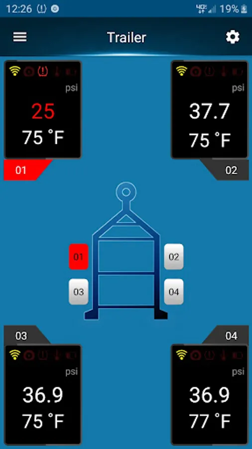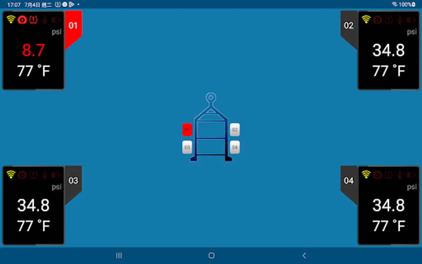 2. Real-time check of tire pressures and tire’s internal temperatures, alerting the operator with both visual and audible alerts if one or more tires’ pressures or temperatures are outside of the approved preset range.
