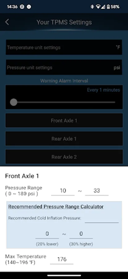 6. Allows user to set Tire Pressure & Tire Temperature limits.