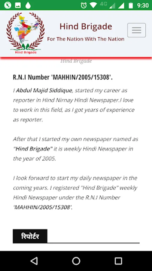 After that I started my own newspaper named as "Hind Brigade" it is weekly Hindi Newspaper in the year of 2005.
