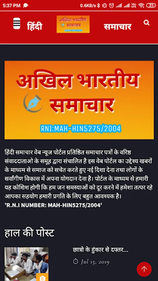 Hindi News Web News Portal is run by a group of senior correspondents of reputed newspapers. Through the portal, we will try to ensure that your cooperation is very essential for our progress.
