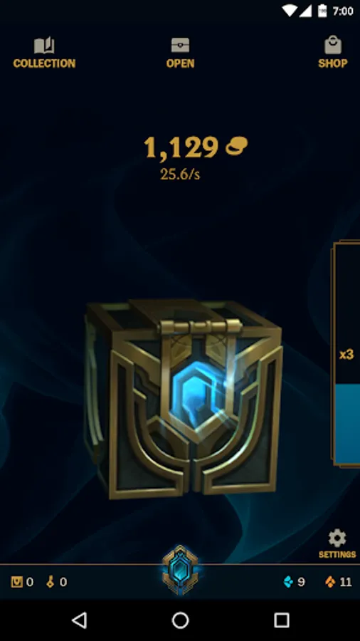 Open chests to obtain shards, upgrade them and complete your collection. You can also obtain the wallpapers for every skin and champion you unlock!