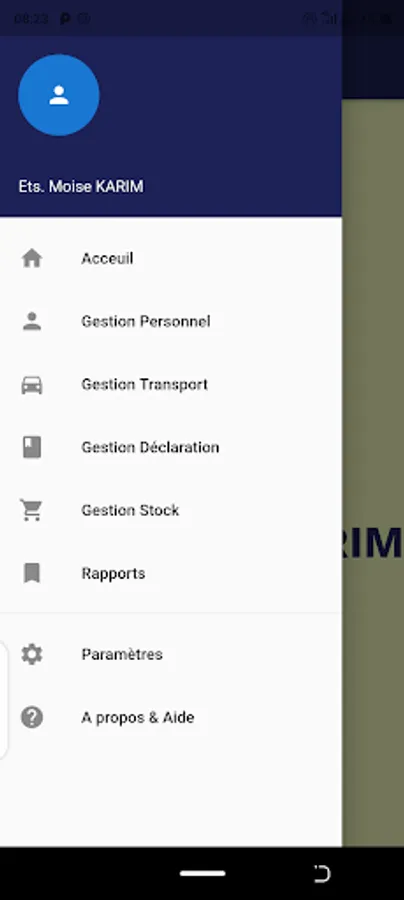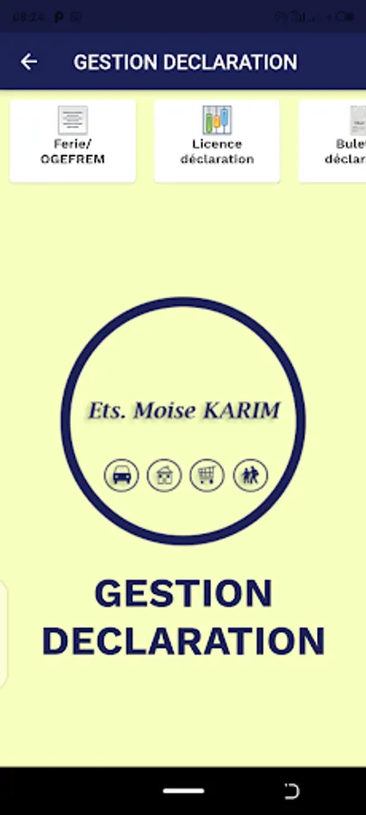 Cette application permet à l'établissement Moise Banza KARIM de gérer les déclarations de ses véhicules y compris de ceux des clients. Elle permet aussi de gérer la distribution et vente du ciment.