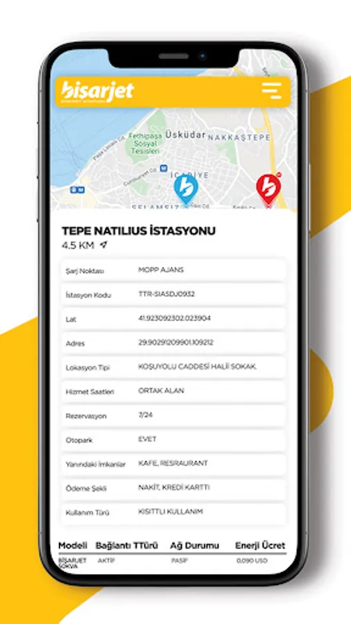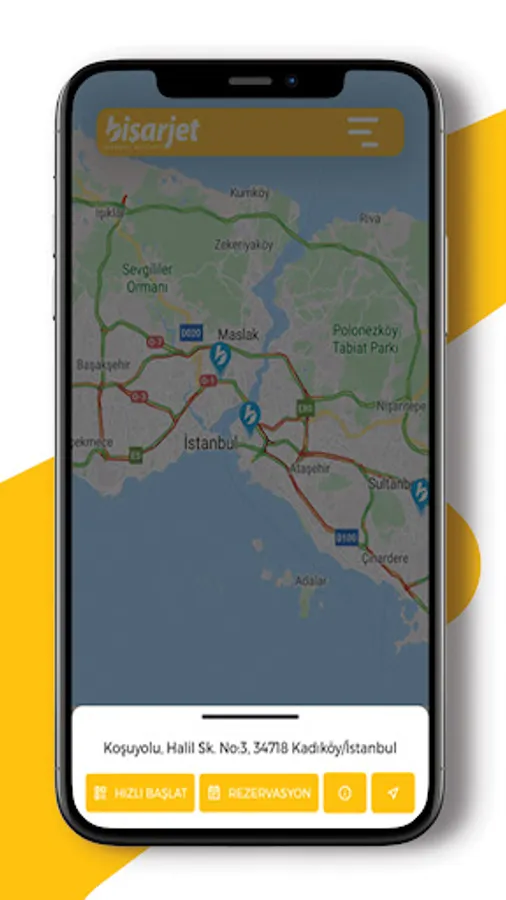 With the mobile application created by Bişarjet for electric vehicle drivers, you can easily see the location of the nearest charging stations and access more information easily.