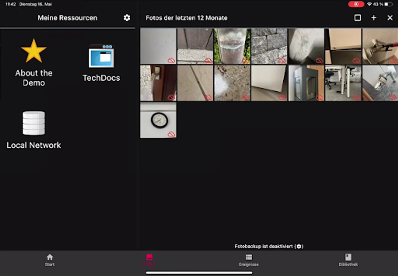 Central photo view in the app for taking damage pictures and copying pictures to network drives