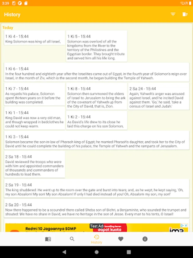- indexed reading (Testament, Book, Chapter)