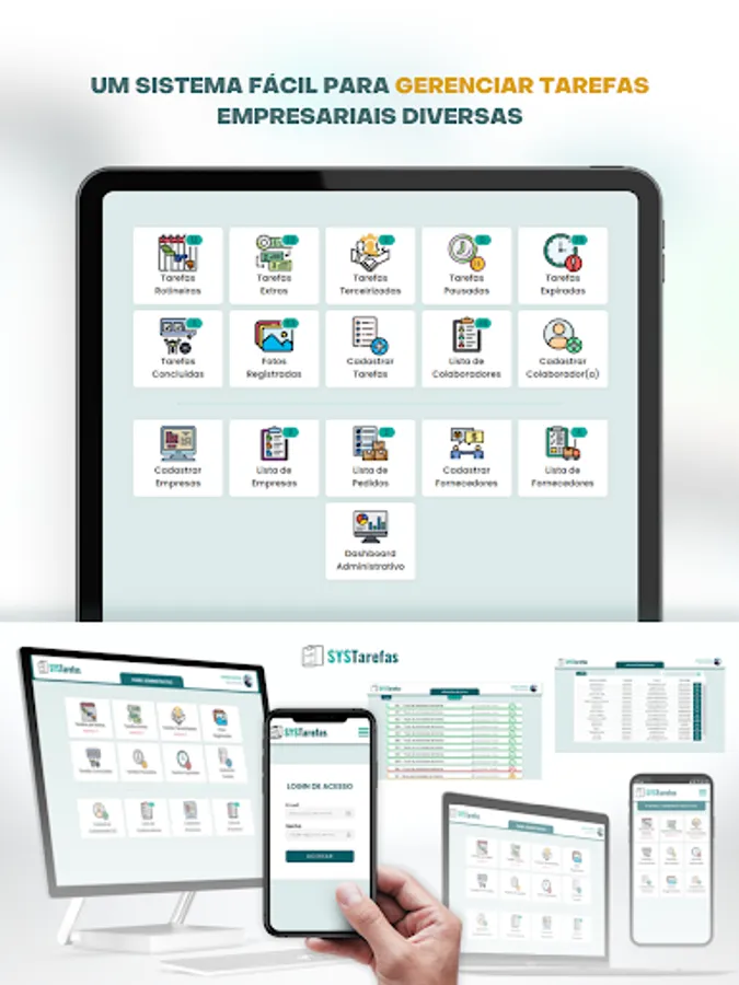 It has never been so easy and intuitive to use a people and activities management system in the field. The SYSTarefas app serves companies in any industry, whether public or private.