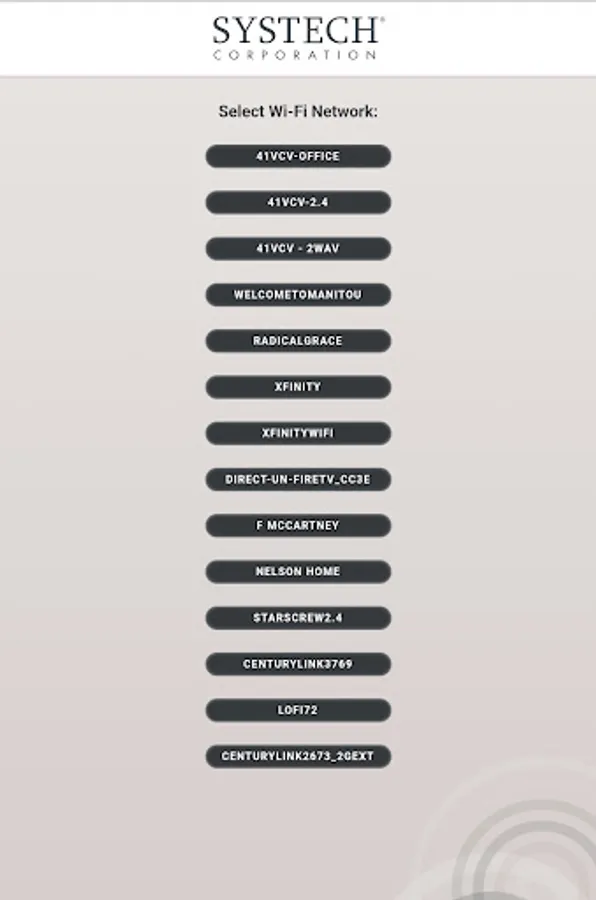 This app is a single-purpose utility, allowing users to configure the Wi-Fi settings of SysLINK and SysCORE internet gateways from Systech Corporation. It will not be useful without a Systech gateway configured to be compatible with Systech Wi-Fi.