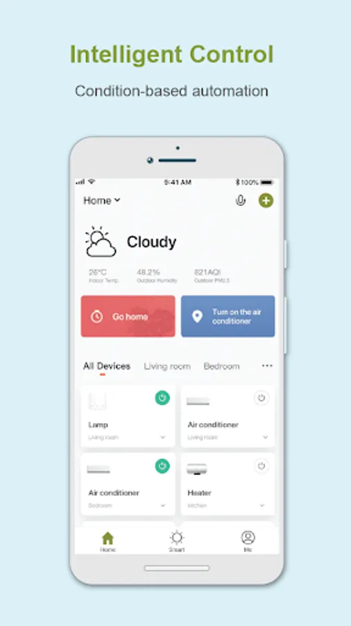 • Integrate multiple smart devices. Devices automatically start/stop working based on temperature, location, and time.