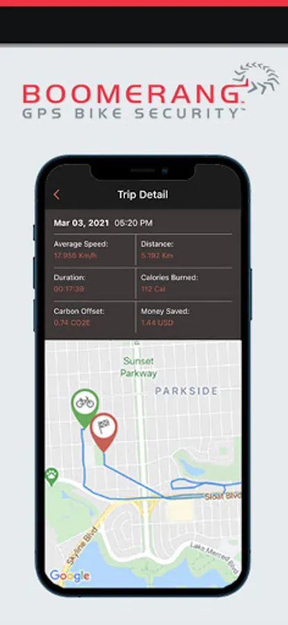 The Boomerang app and GPS device help prevent bike theft and have the following key features: