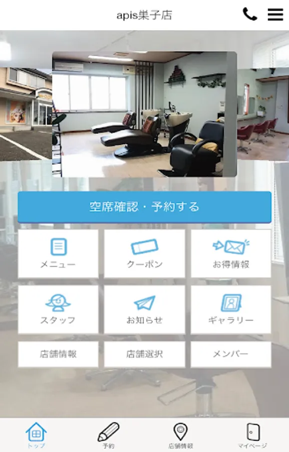 It is the official app of the beauty salon Apis Ninohe store, Kuroishino store, Sugo store and avance Hachinohe store in Iwate prefecture.