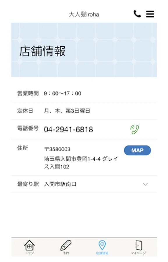 This is the official app of iroha, a beauty salon in Saitama prefecture.