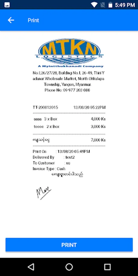 This is logistic & delivery application for Myint Thukha Nadi Logistic Company.
