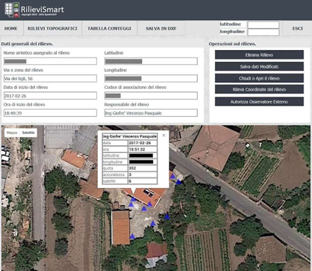 The App works with the Rilievi Smart (http://rilievismart.altervista.org/) portal that allows, once the relief ends, to comfortably view the points on the map and get a wealth of information.