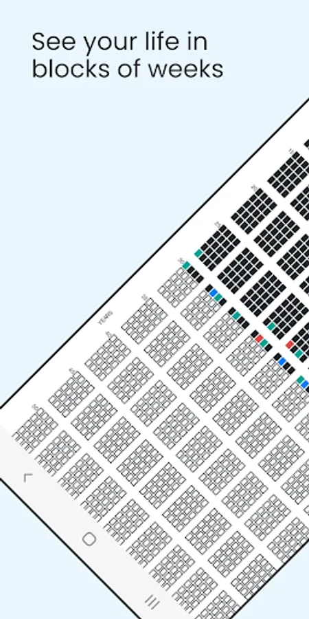 Weeks Gone takes some basic information and calculates your estimated life span, in weeks, based on the latest WHO data. The weeks are displayed as blocks in a personalized calendar that can be explored and rated so you can easily see your entire life.